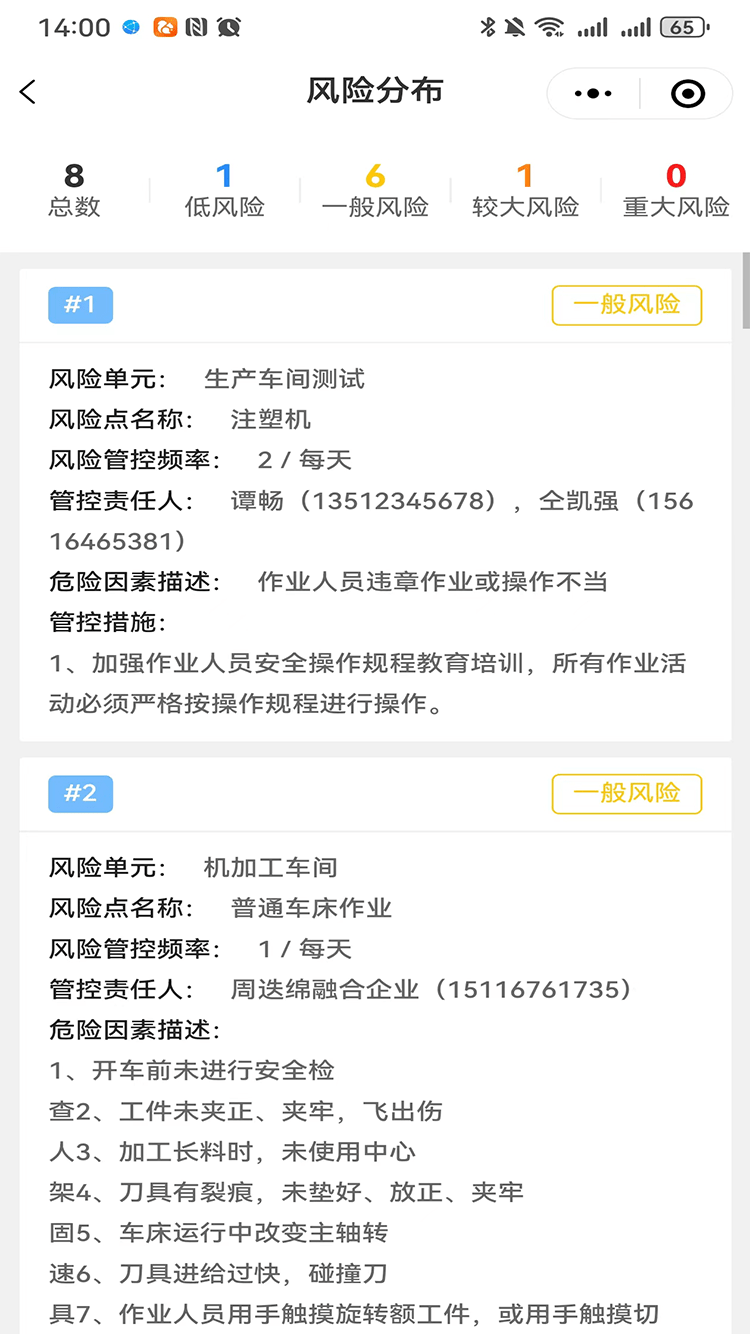 風險分級管控,對應管控層級、管控頻次、管控責任人、管控措施等一目了然,責任落實到人。