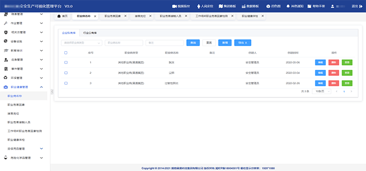 進行職業(yè)病危害因素識別、管理,智能生成職業(yè)危害告知卡,建立職業(yè)危害人員/崗位臺賬,進行職業(yè)危害場所檢測,上傳職業(yè)健康體檢報告,建立職業(yè)健康管理檔案。