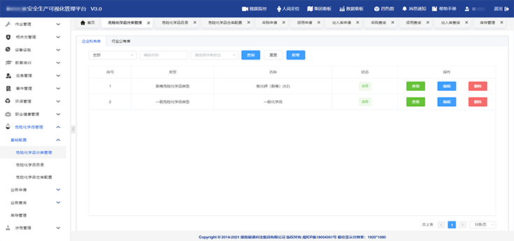 實現(xiàn)危險化學(xué)品分類管理,構(gòu)建危險化學(xué)品目錄,支持危險化學(xué)品采購、領(lǐng)用、及出入庫線上流程審批及記錄查詢,隨時把控相應(yīng)危險化學(xué)品庫存情況。