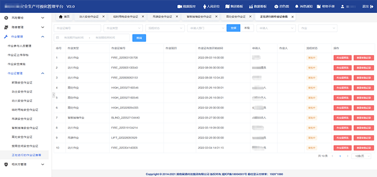制定標準的特殊作業(yè)線上流程,節(jié)省線下審批時間,作業(yè)環(huán)節(jié)可追溯,支持在線打印作業(yè)證,實現(xiàn)特殊作業(yè)數(shù)字化管理。